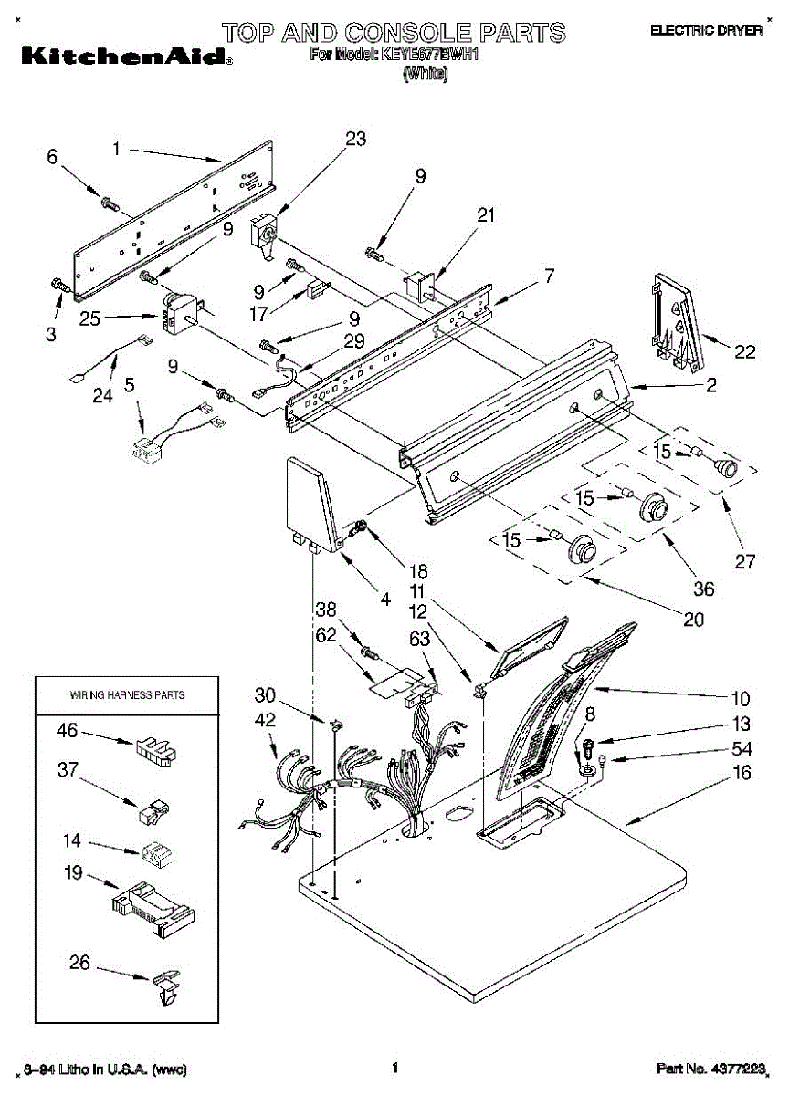 Wire harness assembly that routes power and control signals between dryer components. Replace if wires are damaged, worn, broken, or connections are loose.