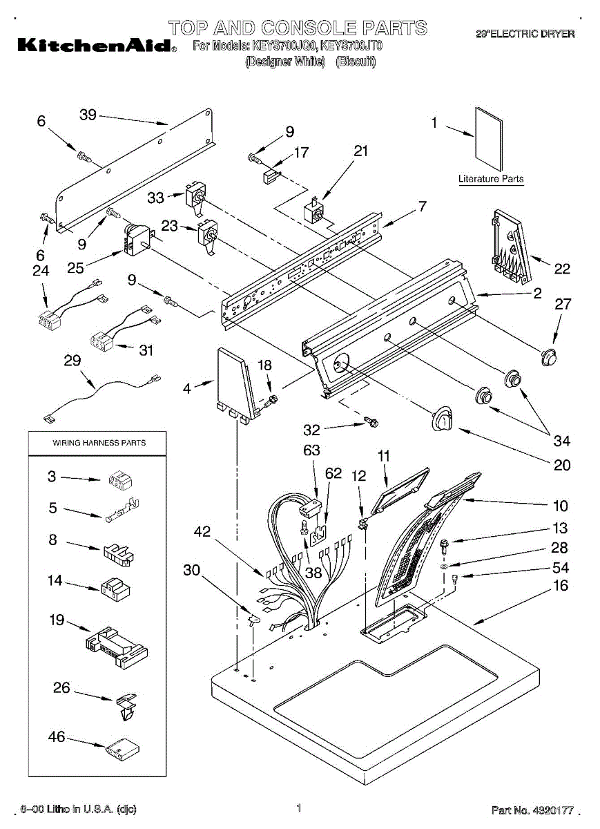 Wire harness assembly that routes power and control signals between dryer components. Replace if wires are damaged, worn, broken, or connections are loose.