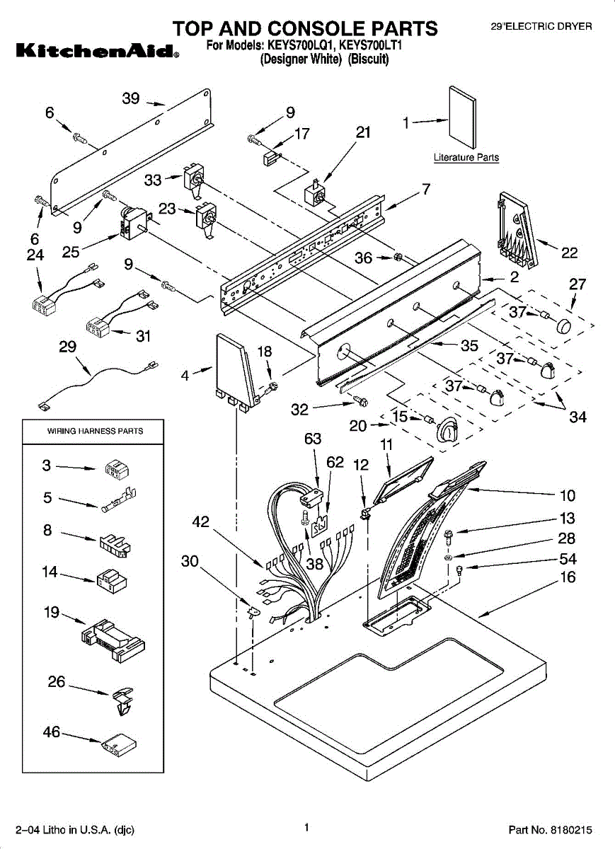 Wire harness assembly that routes power and control signals between dryer components. Replace if wires are damaged, worn, broken, or connections are loose.