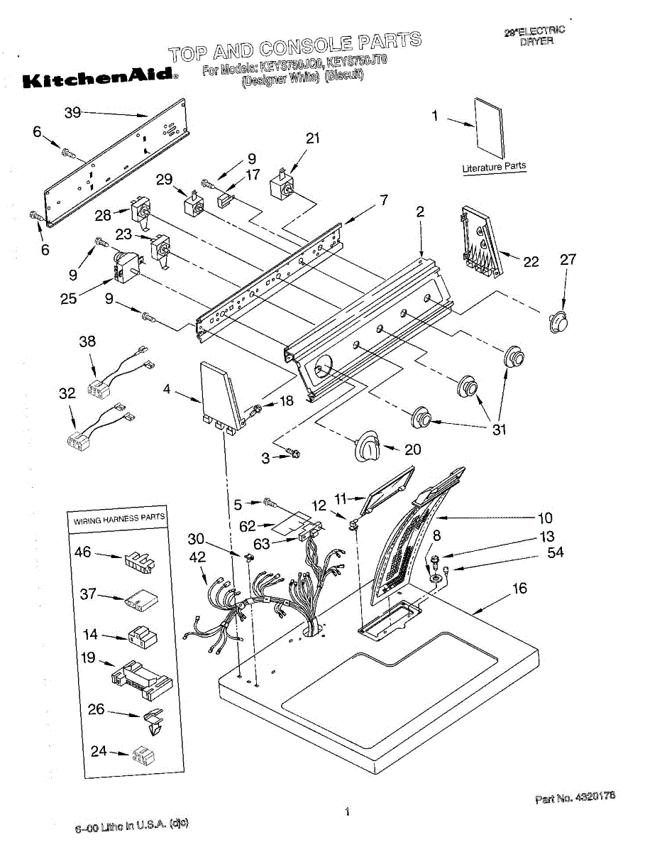 Wire harness assembly that routes power and control signals between dryer components. Replace if wires are damaged, worn, broken, or connections are loose.