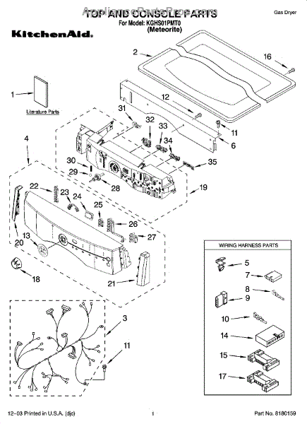 Parts for Kitchenaid KGHS01PMT0: 01 - Top And Console Parts