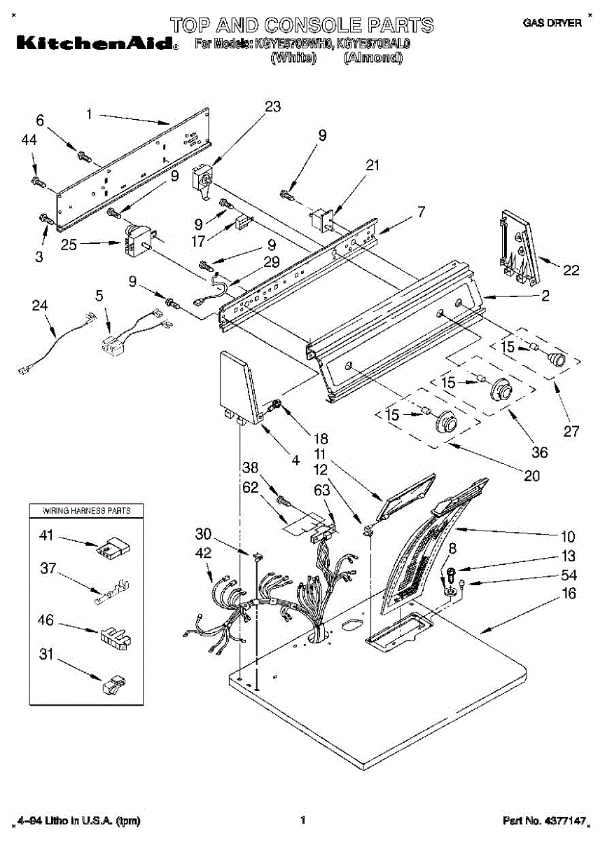 Wire harness assembly that routes power and control signals between dryer components. Replace if wires are damaged, worn, broken, or connections are loose.
