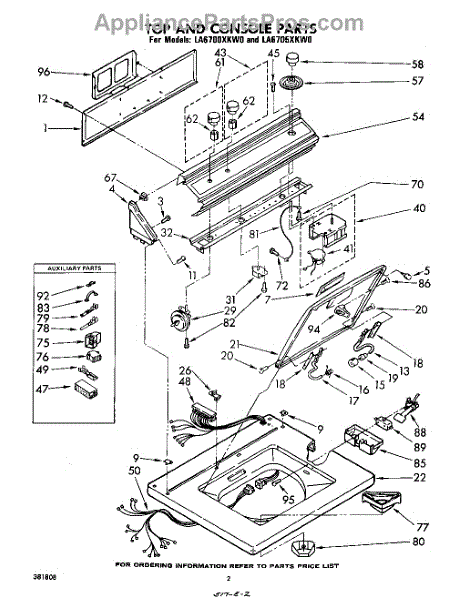 Parts for Whirlpool LA6705XKW0: 02 - Top And Console Parts