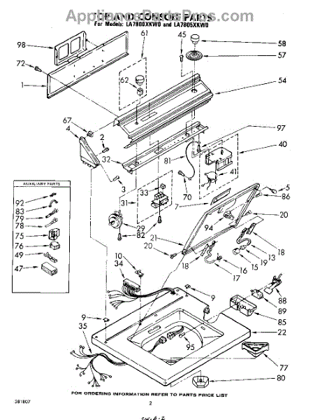 Parts for Whirlpool LA7800XKW0: 02 - Top And Console Parts