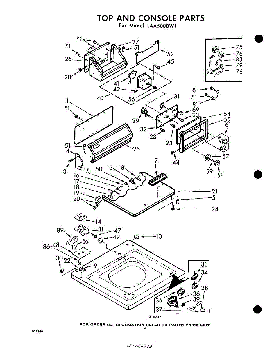 Parts for Whirlpool LAA5000W1: 04 - Top And Console Parts