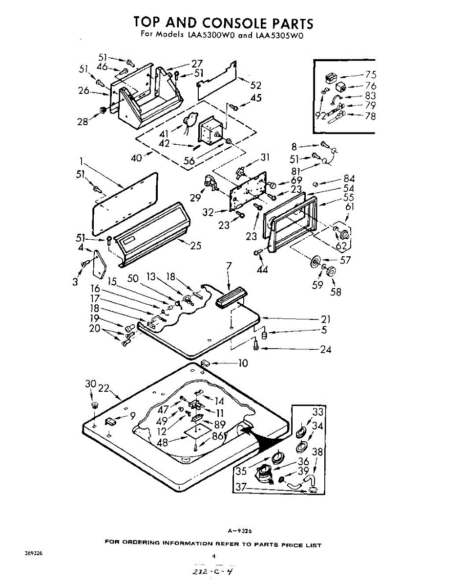 Parts for Whirlpool LAA5305W0: 04 - Top And Console Parts