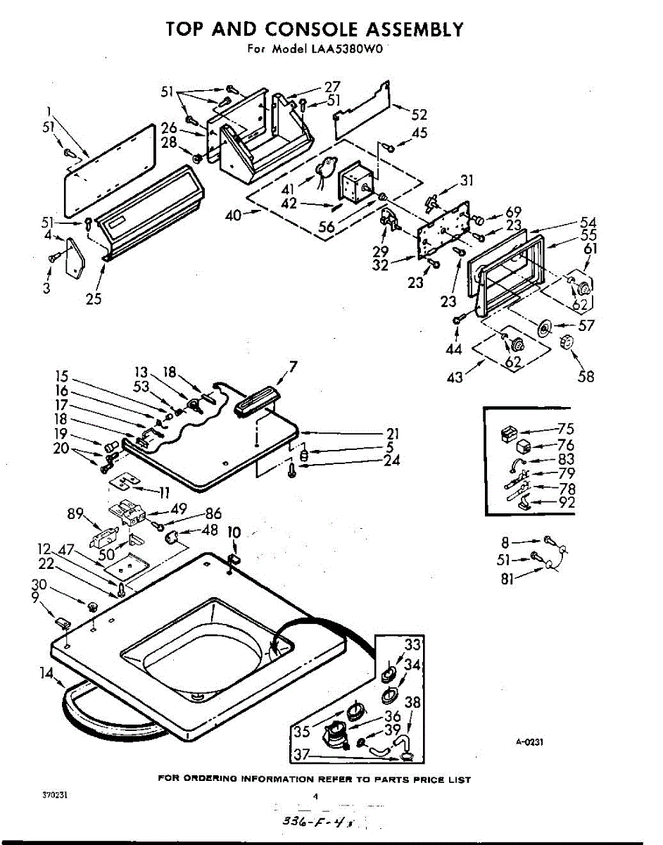 Parts for Whirlpool LAA5380W0: 04 - Top And Console Parts