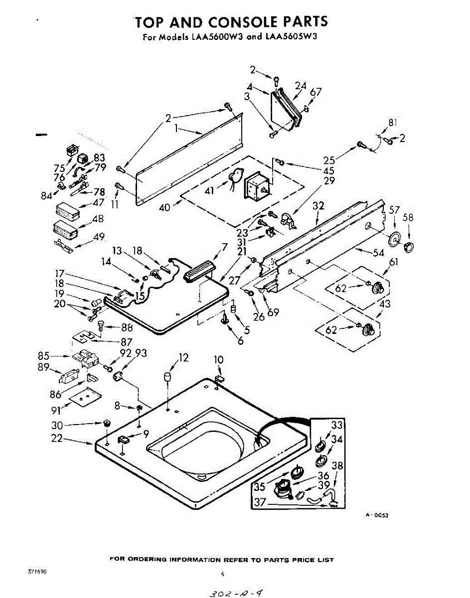 Parts for Whirlpool LAA5600W3: 04 - Top And Console Parts