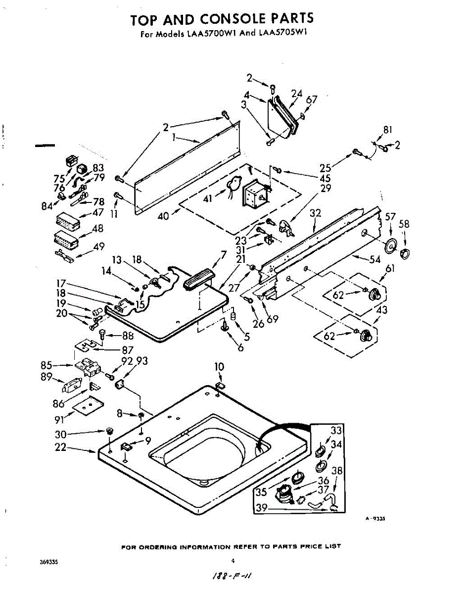 Parts for Whirlpool LAA5700W1: 04 - Top And Console Parts