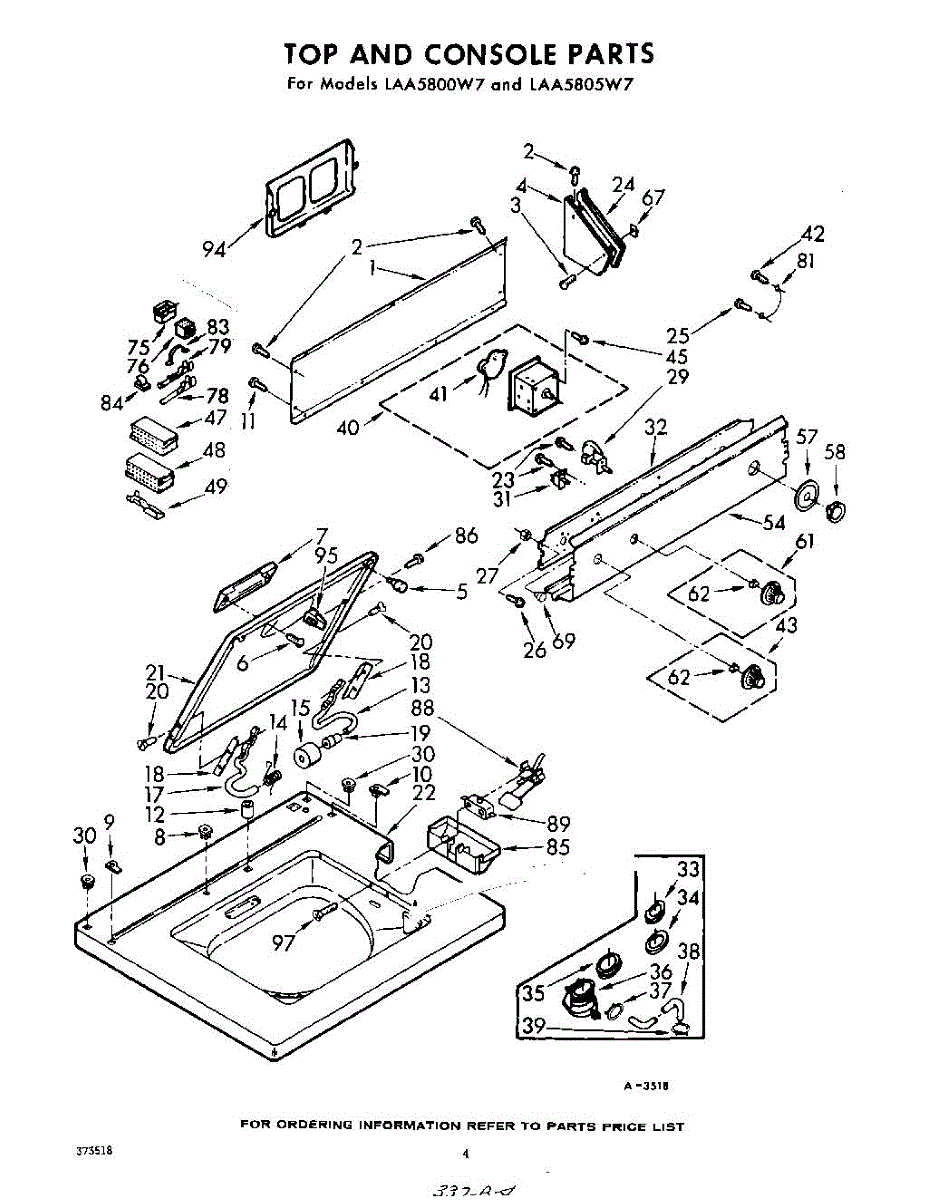 Parts for Whirlpool LAA5800W7: 04 - Top And Console Parts
