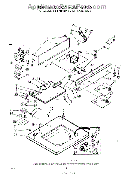 Parts for Whirlpool LAA5805W5: 04 - Top And Console Parts