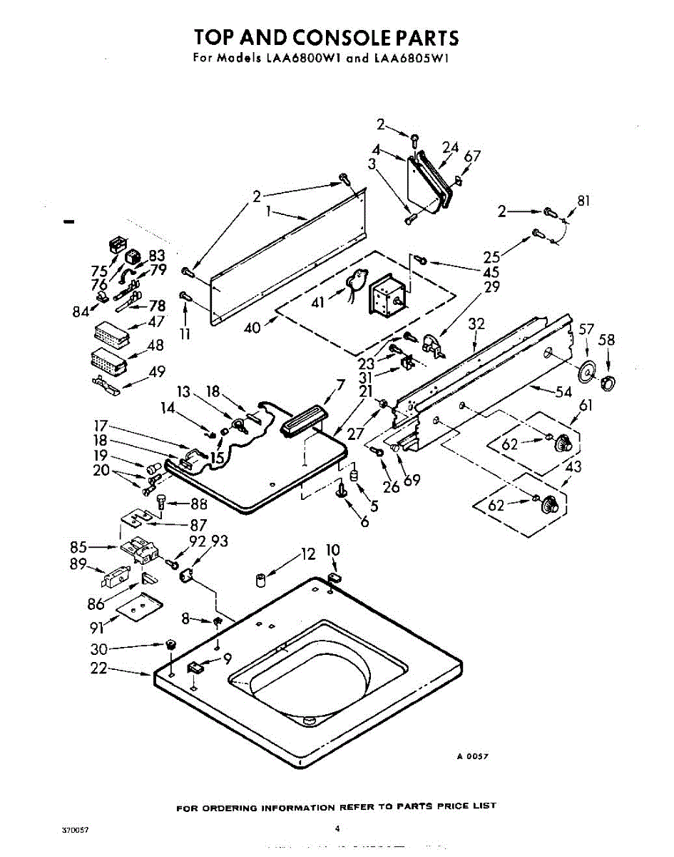 Parts for Whirlpool LAA6800W1: 04 - Top And Console Parts