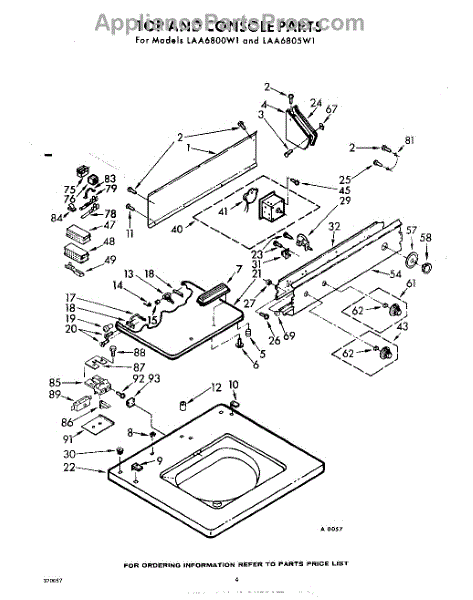 Parts for Whirlpool LAA6805W1: 04 - Top And Console Parts