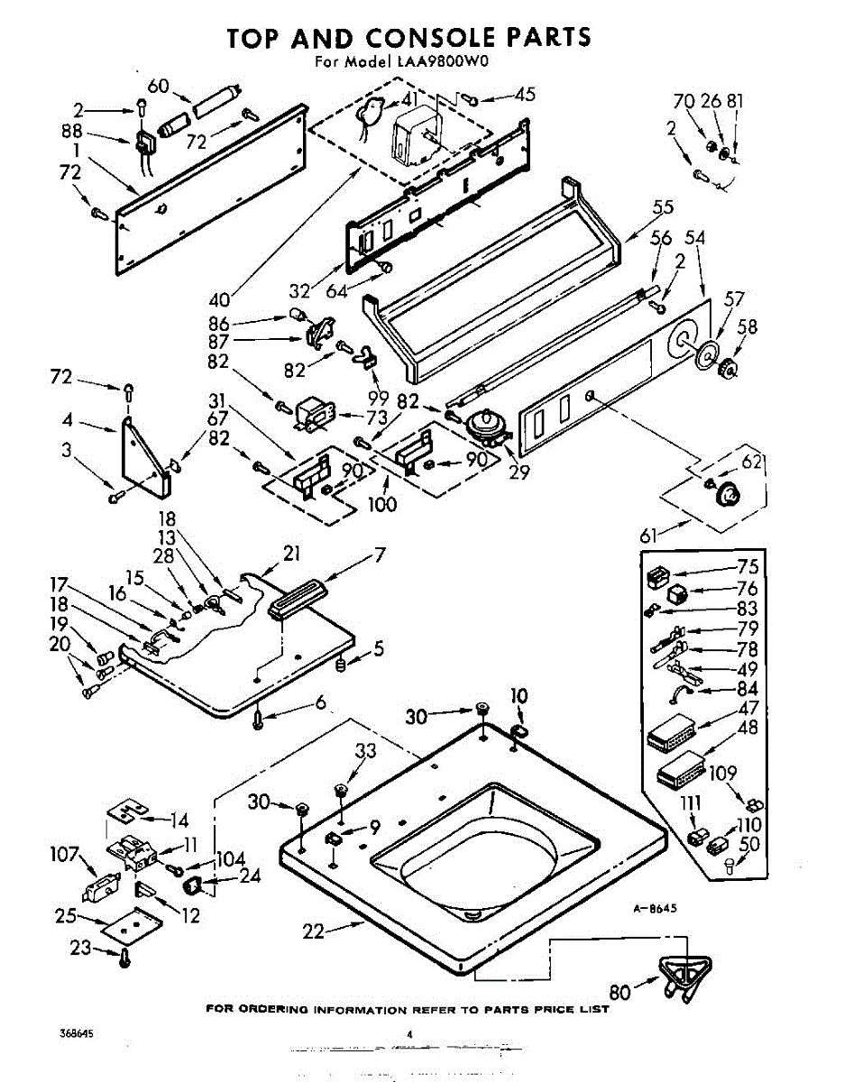 Parts for Whirlpool LAA9800W0: 04 - Top And Console Parts