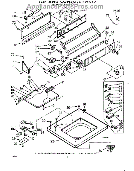 Parts for Whirlpool LAA9800W1: 04 - Top And Console Parts