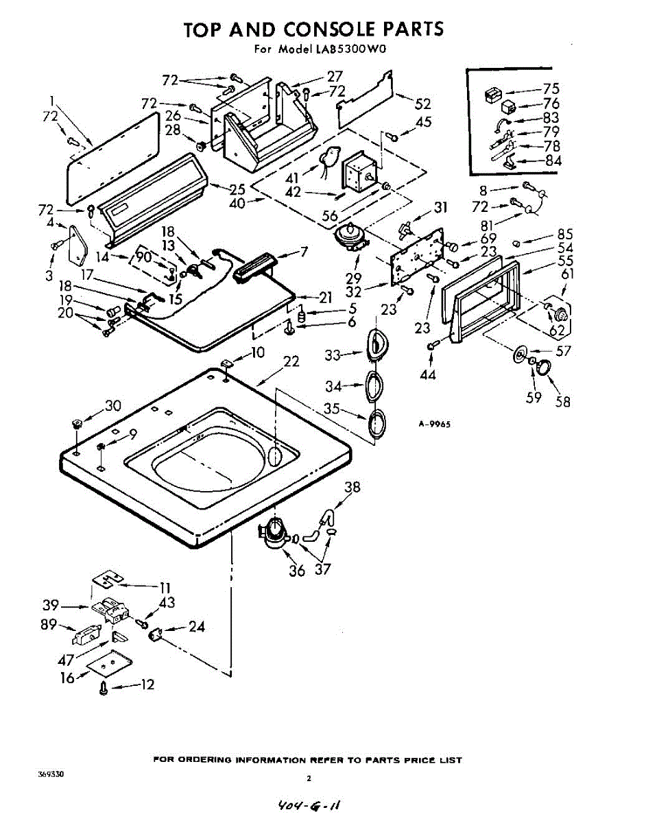 Parts for Whirlpool LAB5300W0: 02 - Top And Console Parts