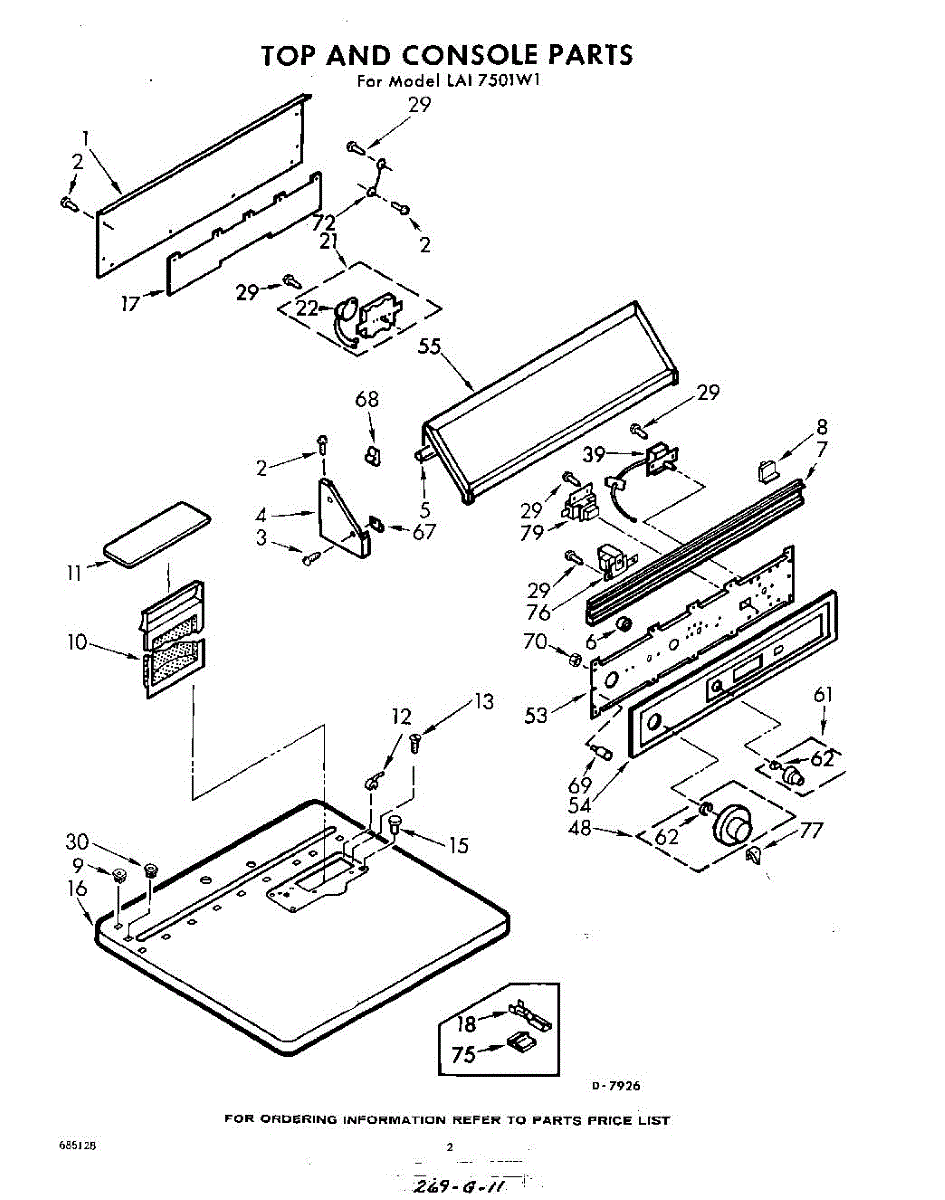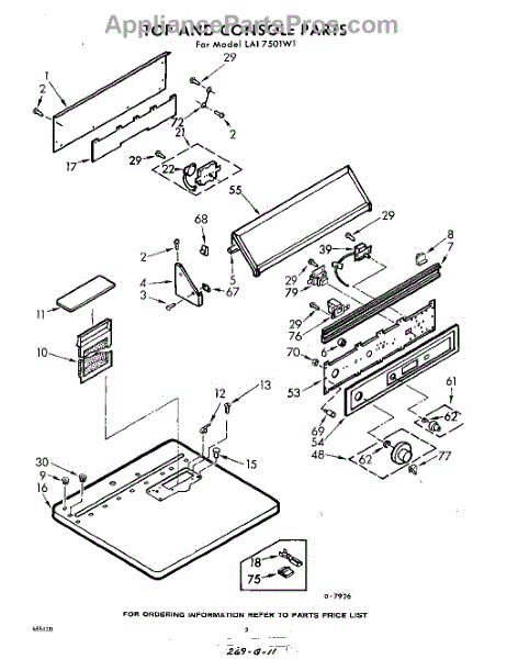 Parts for Whirlpool LAI7501W1: 02 - Top And Console Parts