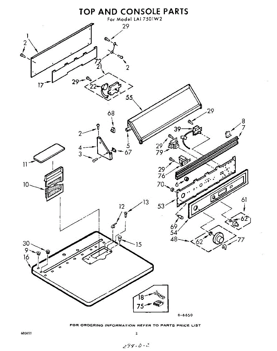 Parts for Whirlpool LAI7501W2: 02 - Top And Console Parts