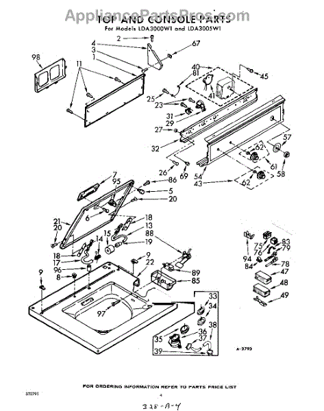 Parts for Whirlpool LDA3000W1: 04 - Top And Console Parts