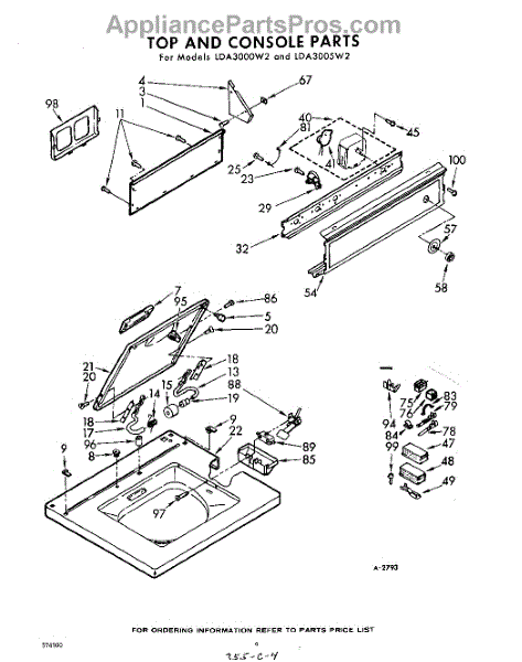 Parts for Whirlpool LDA3000W2: 04 - Top And Console Parts