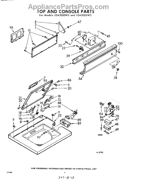 Parts for Whirlpool LDA3000W3: 04 - Top And Console Parts
