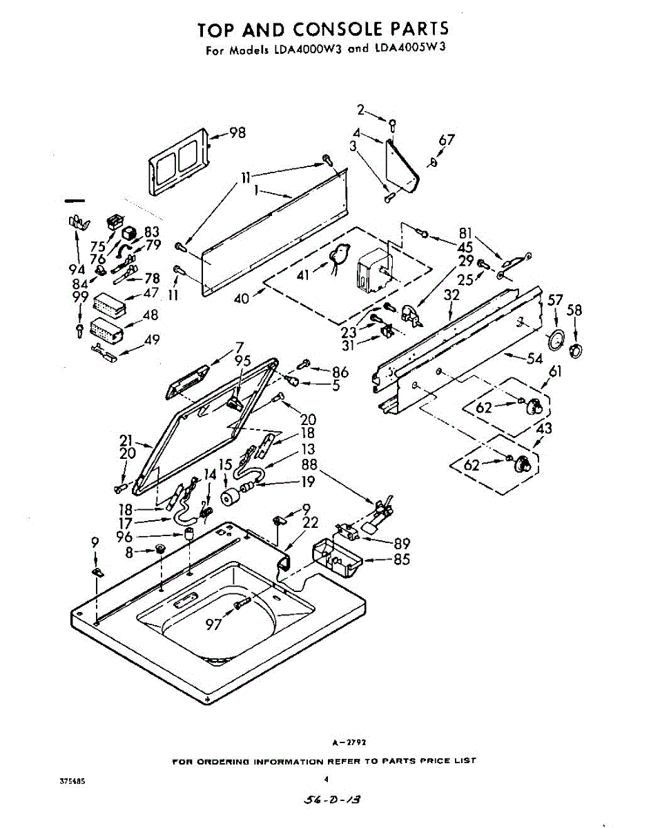 Parts for Whirlpool LDA4000W3: 04 - Top And Console Parts