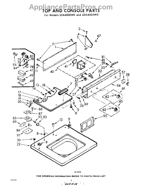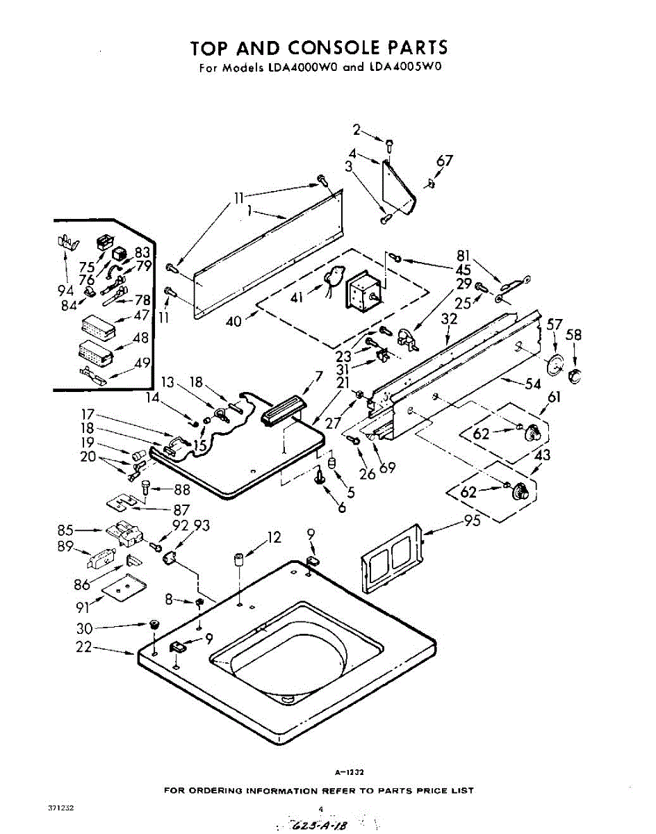 Parts for Whirlpool LDA4005W0: 04 - Top And Console Parts