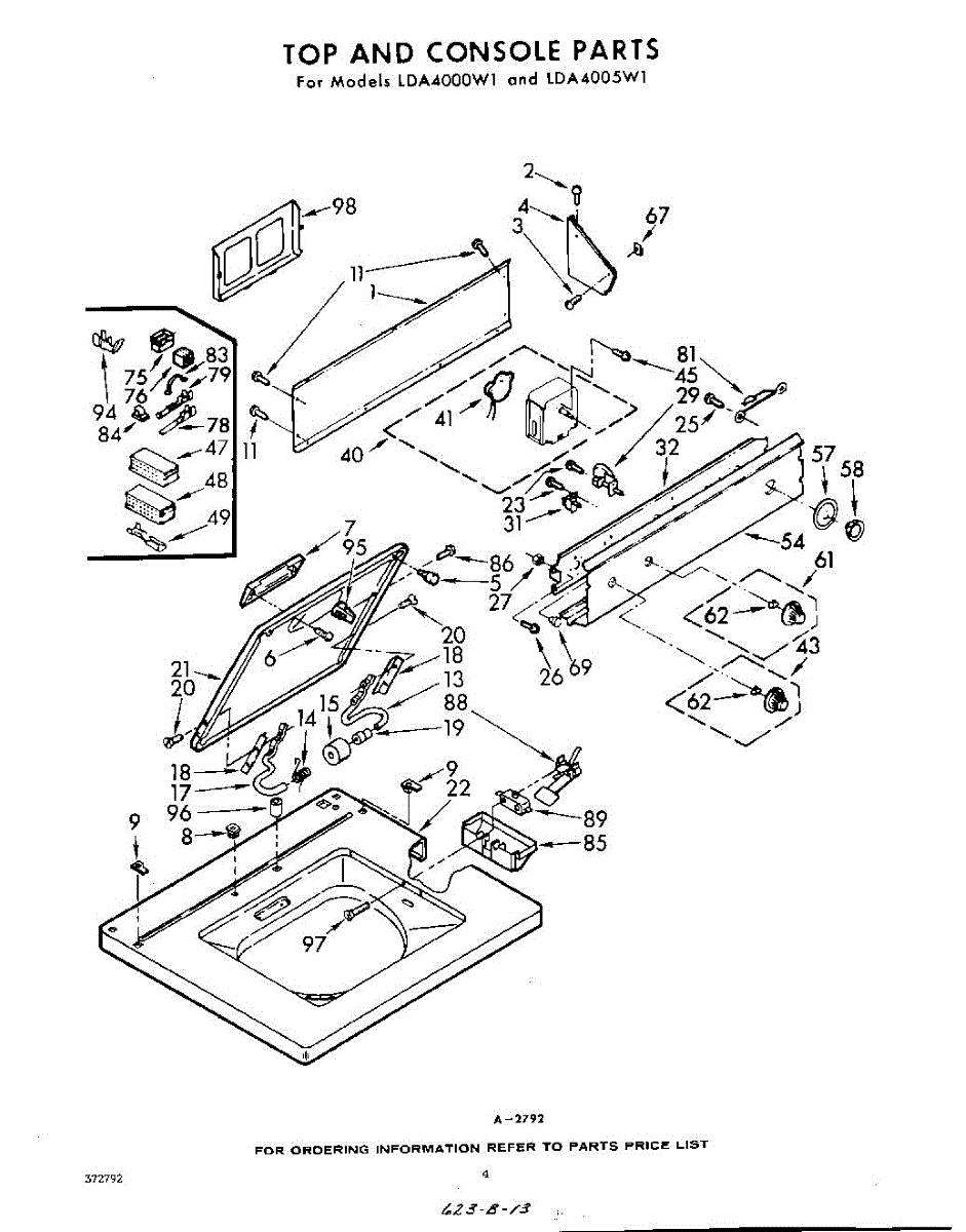 Parts for Whirlpool LDA4005W1: 04 - Top And Console Parts