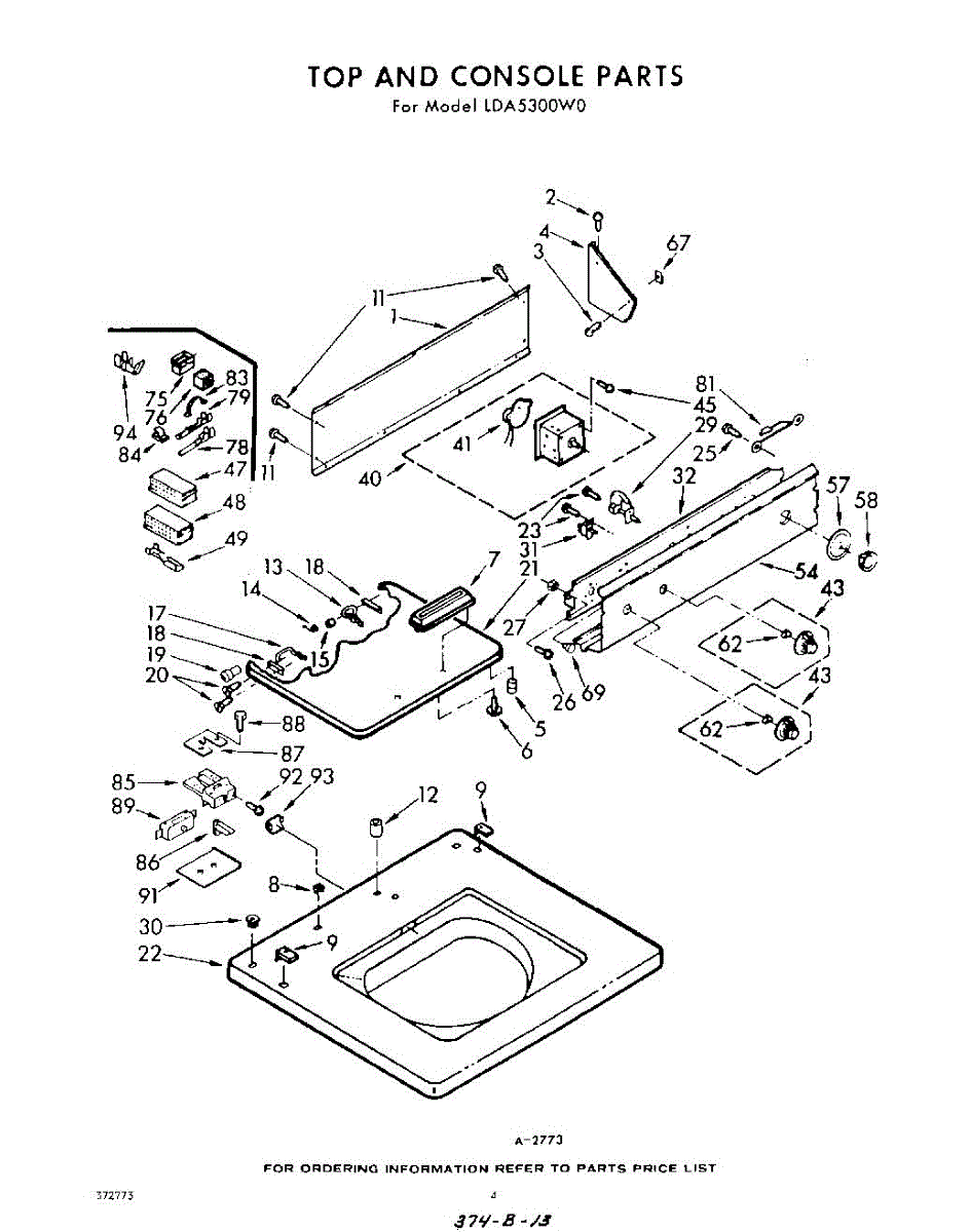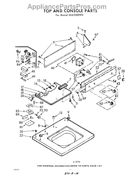 Parts for Whirlpool LDA5300W0: 04 - Top And Console Parts
