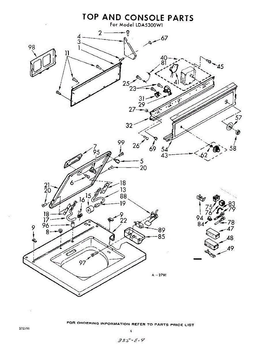 Parts for Whirlpool LDA5300W1: 04 - Top And Console Parts