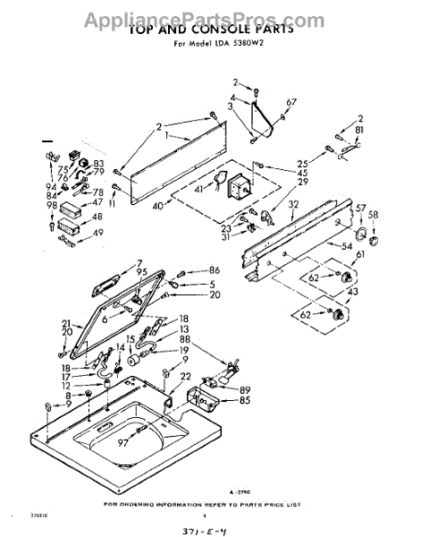 Parts for Whirlpool LDA5380W2: 04 - Top And Console Parts