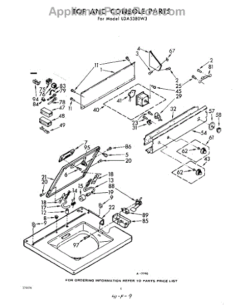 Parts for Whirlpool LDA5380W3: 04 - Top And Console Parts