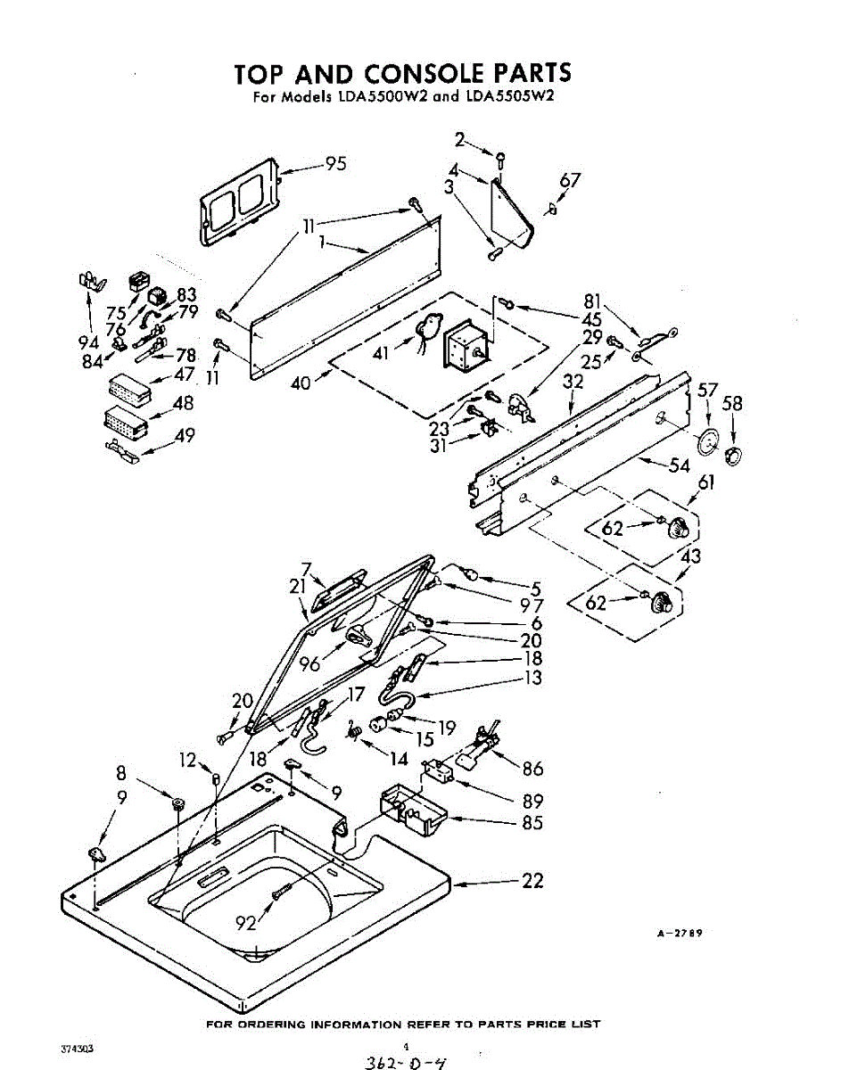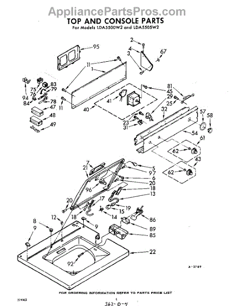 Parts for Whirlpool LDA5500W2: 04 - Top And Console Parts