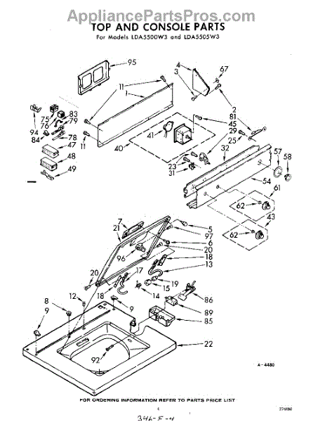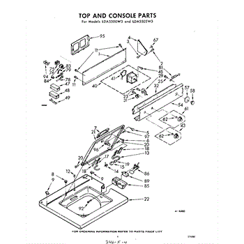 Parts for Whirlpool LDA5500W3: 04 - Top And Console Parts