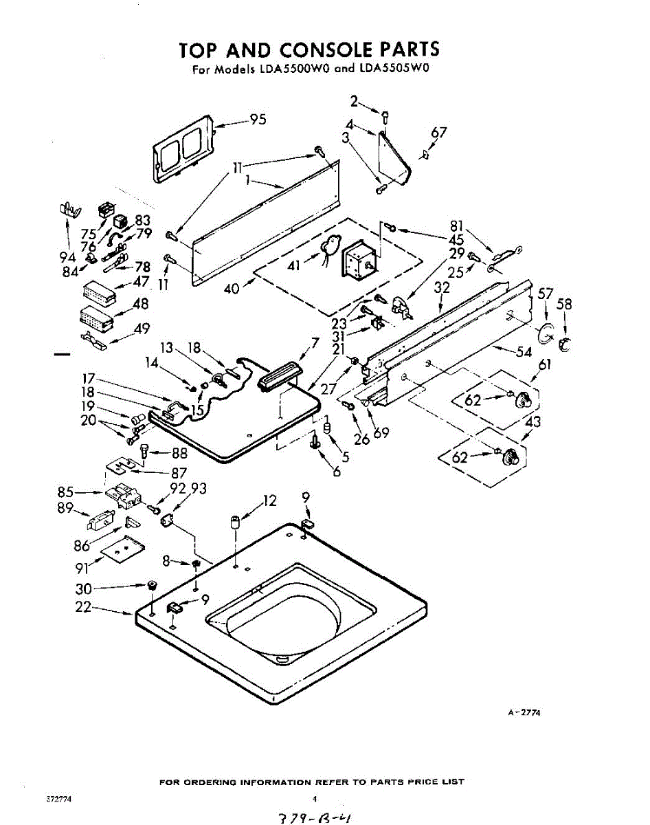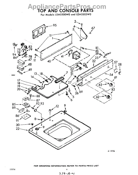 Parts for Whirlpool LDA5505W0: 04 - Top And Console Parts