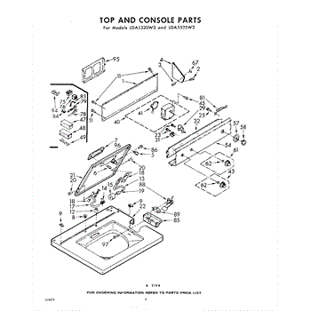 Parts for Whirlpool LDA5520W3: 04 - Top And Console Parts