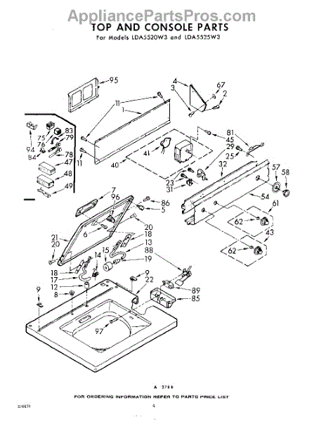 Parts for Whirlpool LDA5525W3: 04 - Top And Console Parts