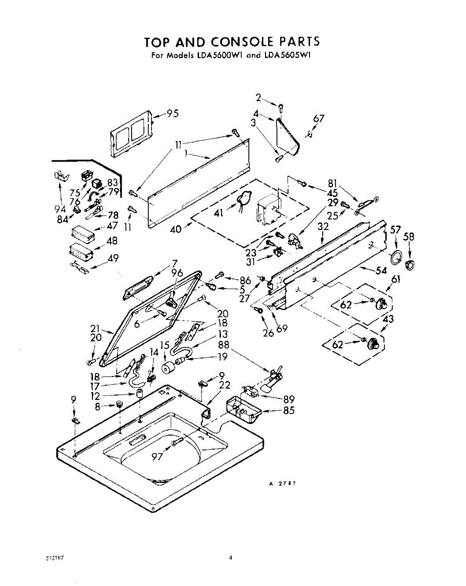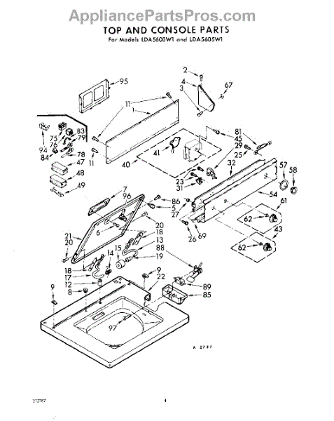 Parts for Whirlpool LDA5600W1: 04 - Top And Console Parts