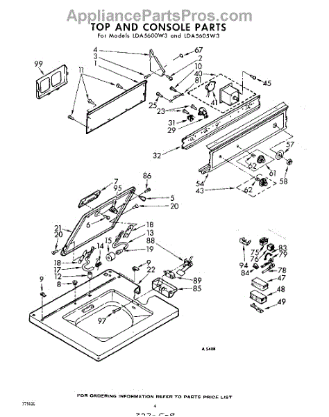 Parts for Whirlpool LDA5605W3: 04 - Top And Console Parts