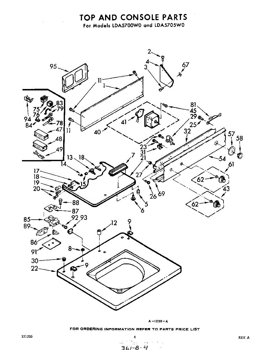 Parts for Whirlpool LDA5700W0: 04 - Top And Console Parts