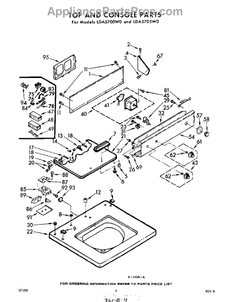 Parts for Whirlpool LDA5705W0: 04 - Top And Console Parts