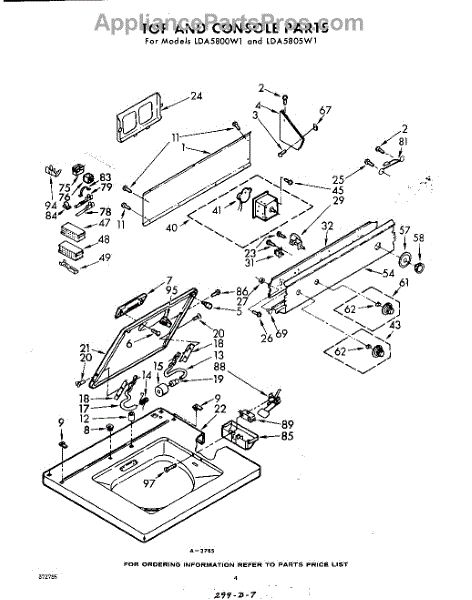 Parts for Whirlpool LDA5800W1: 04 - Top And Console Parts