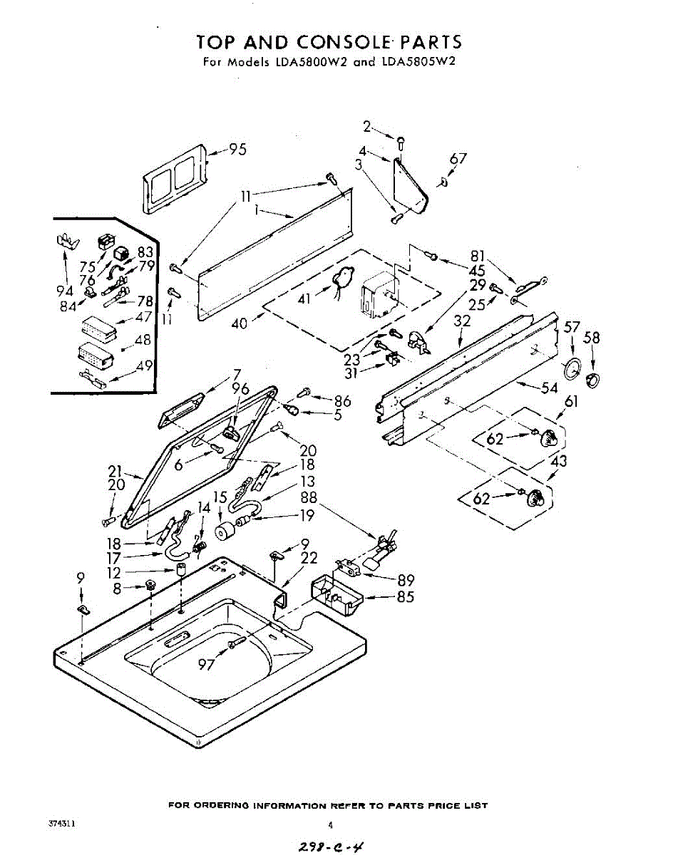 Parts for Whirlpool LDA5800W2: 04 - Top And Console Parts
