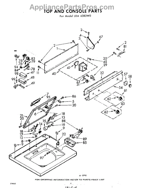Parts for Whirlpool LDA6380W0: 04 - Top And Console Parts