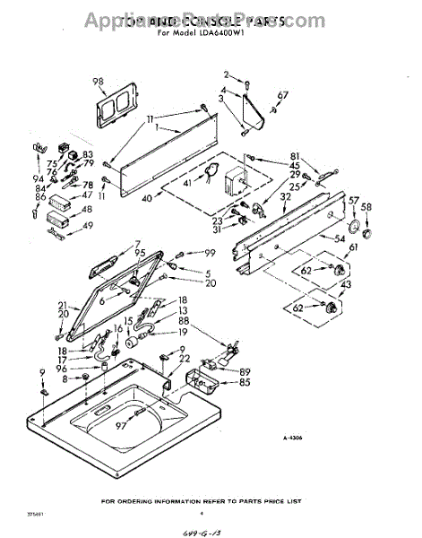 Parts for Whirlpool LDA6400W1: 04 - Top And Console Parts