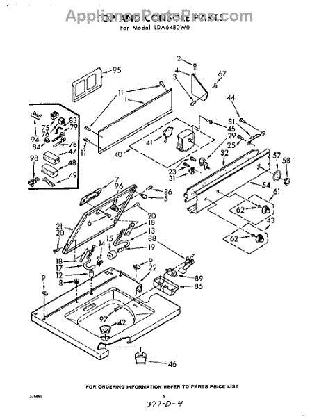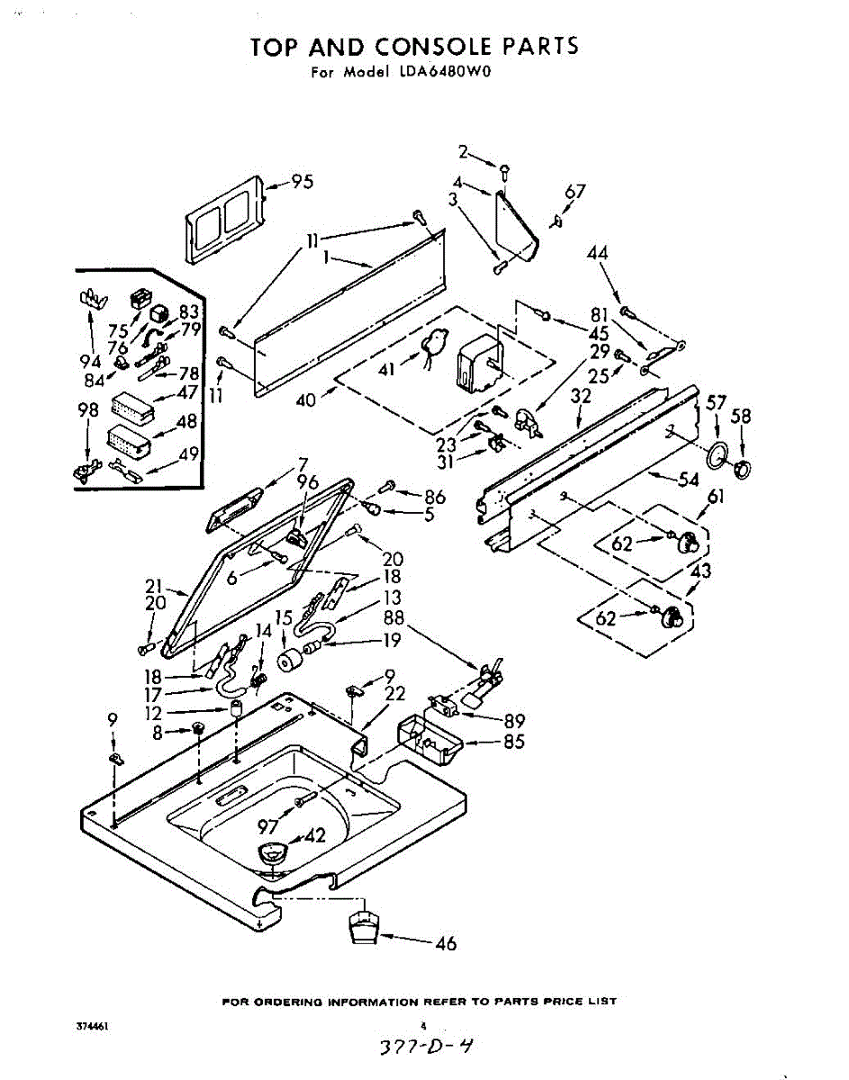 Parts for Whirlpool LDA6480W0: 04 - Top And Console Parts