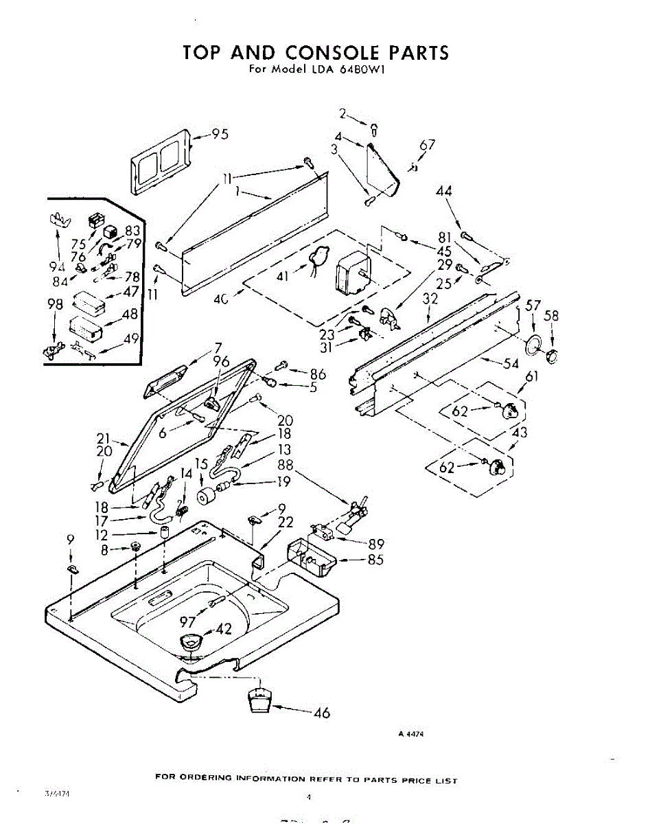 Parts for Whirlpool LDA6480W1: 04 - Top And Console Parts