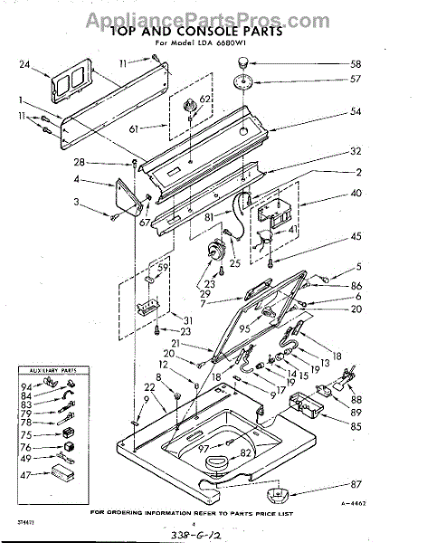 Parts for Whirlpool LDA6680W1: 04 - Top And Console Parts