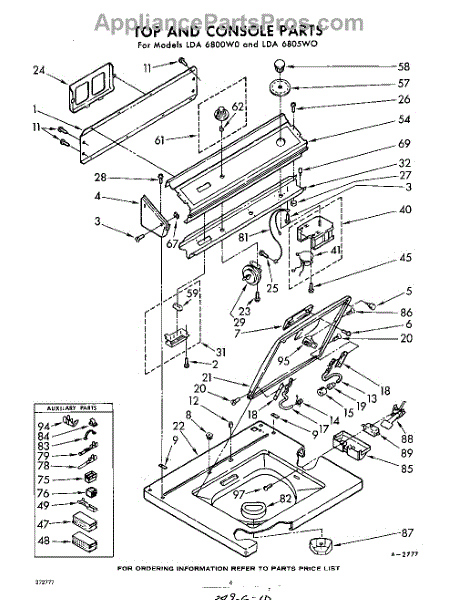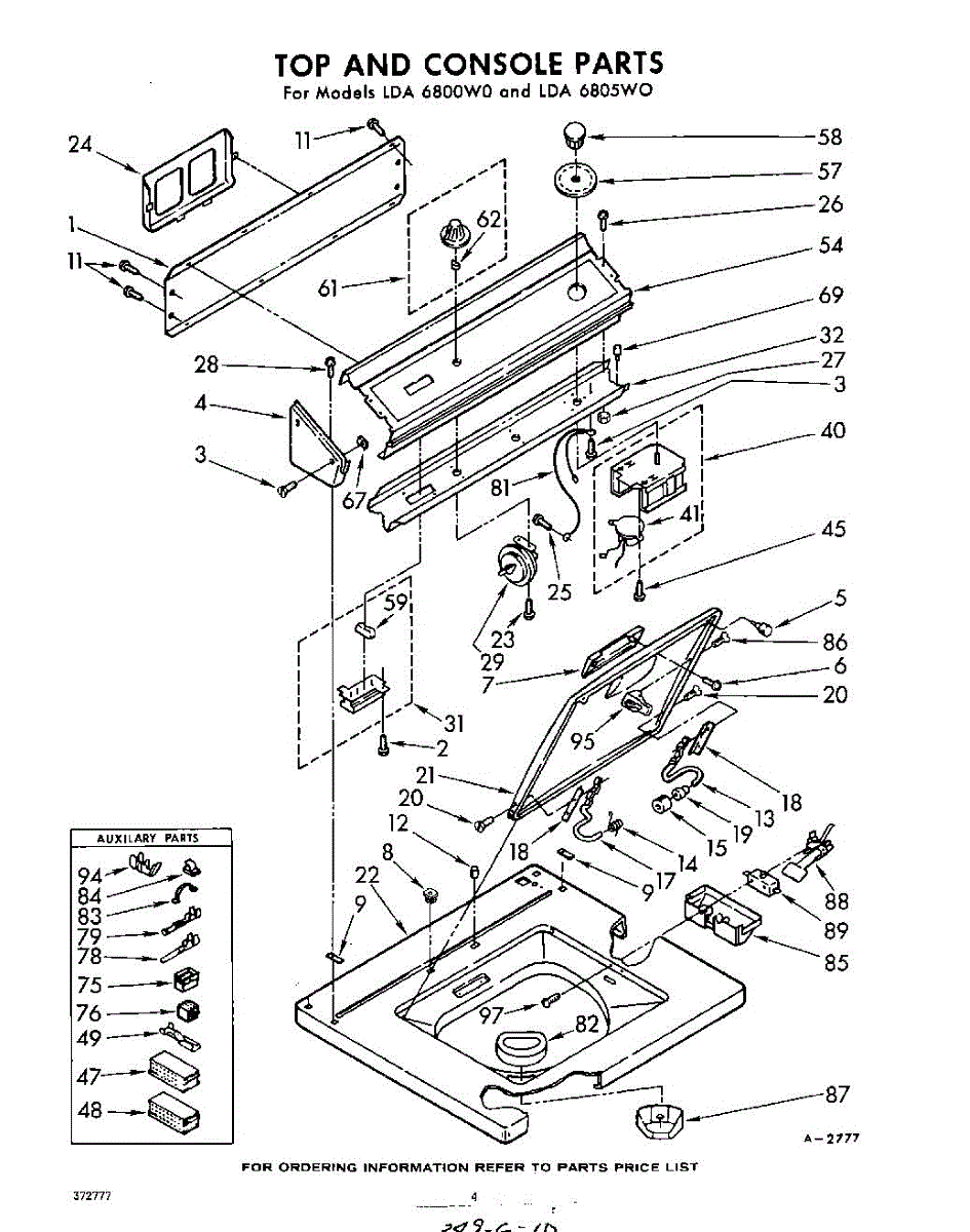 Parts for Whirlpool LDA6800W0: 04 - Top And Console Parts
