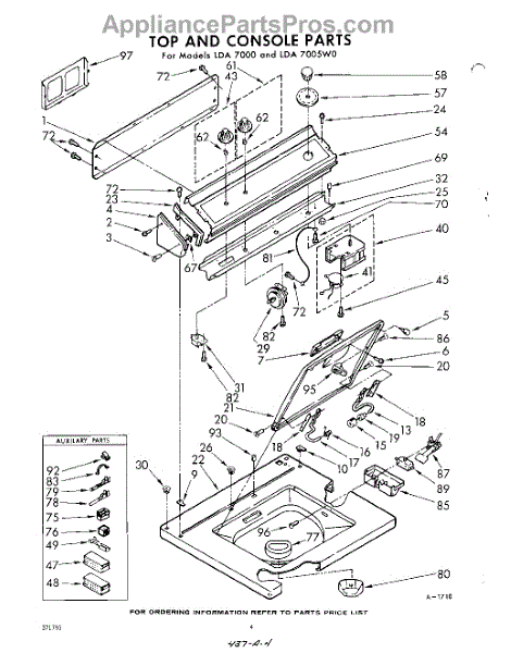 Parts for Whirlpool LDA7005W0: 04 - Top And Console Parts